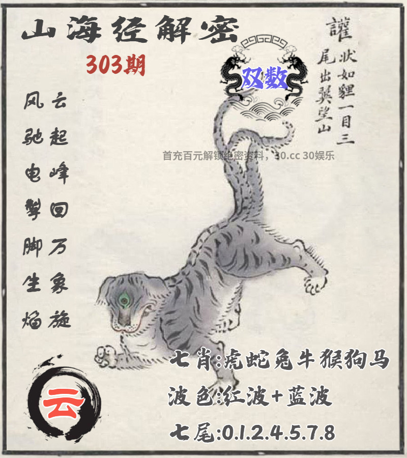 300期:🎼绝杀二尾🎼【2.5尾】开:虎40准
