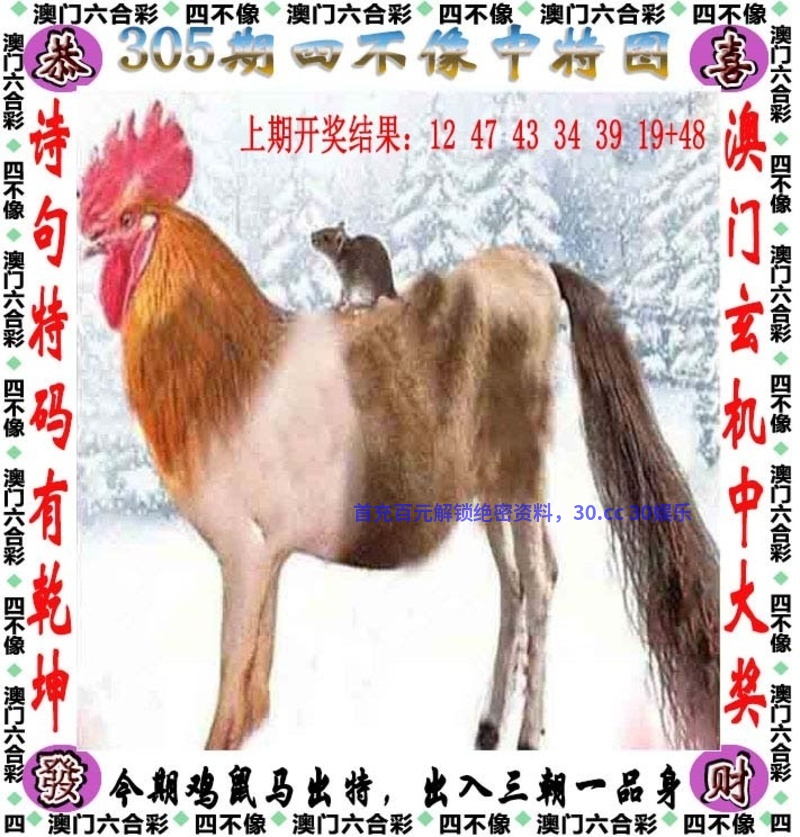 | 305期四肖 | 鸡蛇猪鼠 | 開:鼠42 |