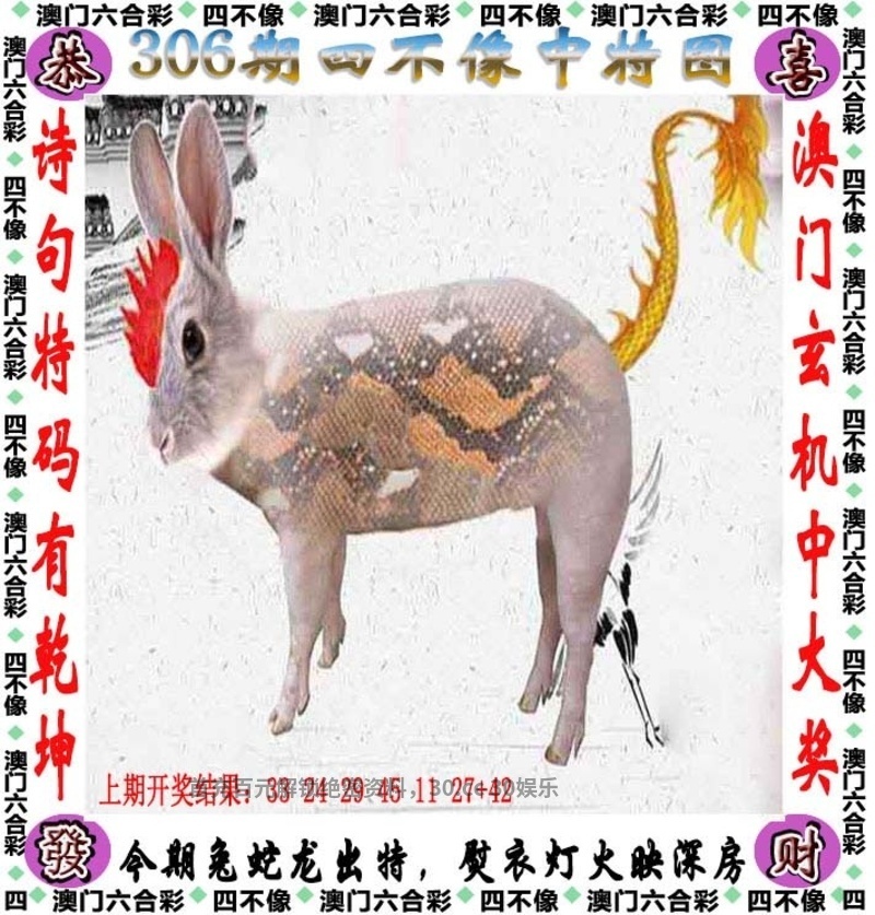 | 308期六肖 | 龙蛇鸡猪兔猴 | 開:發00 |